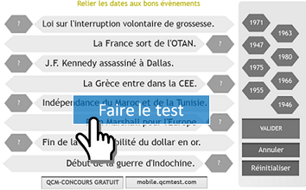 Dans ce test il faut relier les dates aux bons évènements. Jeu glisser/déposer