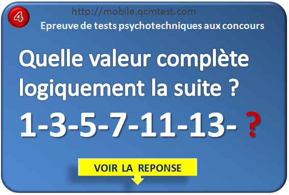 Correction du test de Logique n°4. Réponse : 15 Réponse : cette série de chiffre est une suite de nombres premiers.