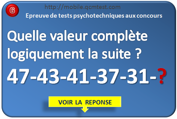 Correction du test de Logique n°6. Réponse : 29 Réponse : il s'agit ici d'une suite décroissante de nombres premiers.