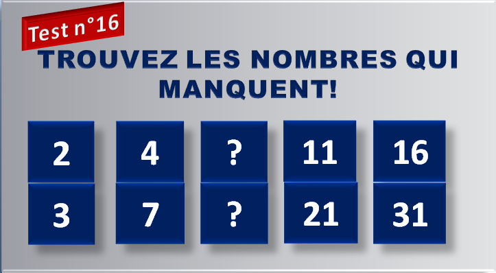 Test 16/41. Test d'intelligence numérique. Codage lettres, chiffres.