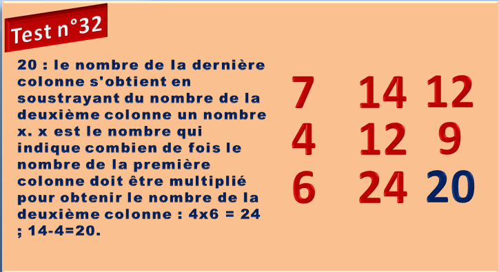 Test 32/41. Test d'intelligence numérique, codage, lettres, chiffres.