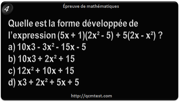 5ème série de Qcm corrigés de l'épreuve de mathématiques